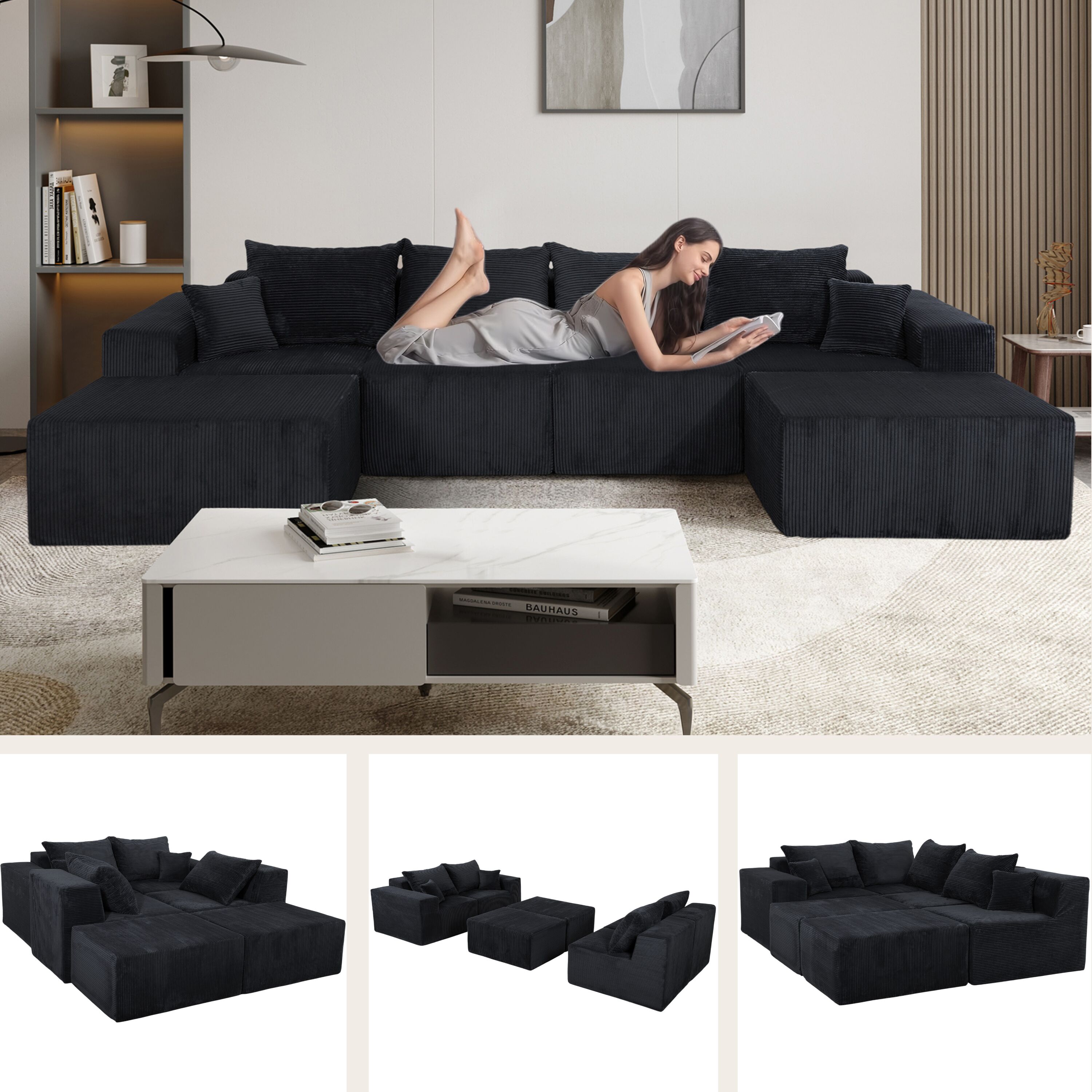 - •Versatile Modular Sectional Sofa – Create Your Ideal Layout:Transform your living space with this 6-piece U-shaped modular sectional sofa, Reconfigure each module to suit your style, maximize floor space, or fit neatly against any wall, This convertible sofa is perfect for family gatherings, movie nights, or everyday relaxation